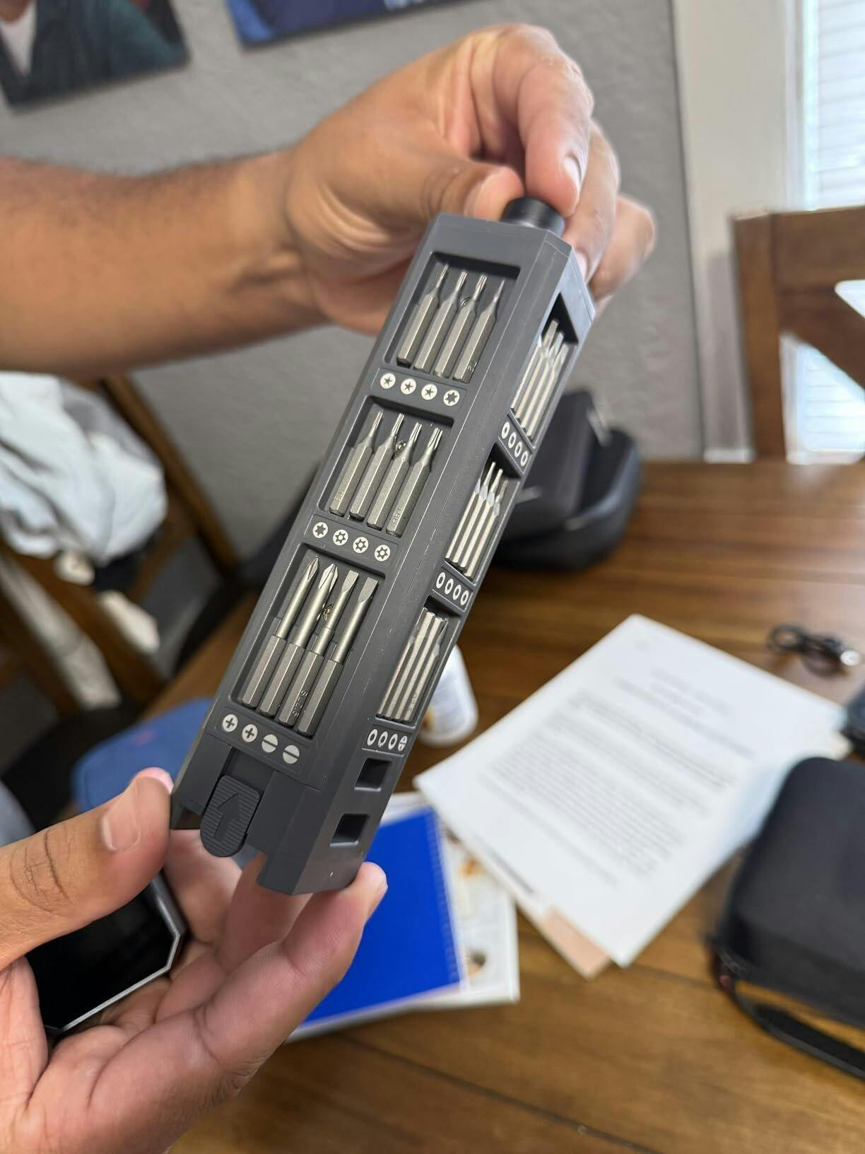 ビット交換は数秒。家具の組み立て、玩具の修理、家電の分解もこれ1本。工具箱をガチャガチャ漁る必要はもうなし。